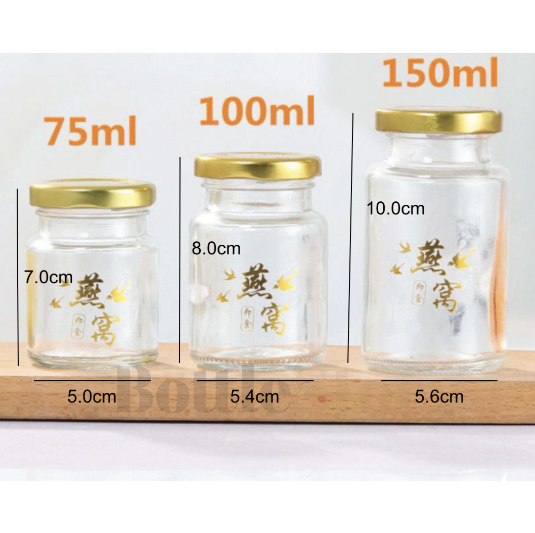 Closure           : 48mm metal lug cap with liner (Gold / Silver / Black)